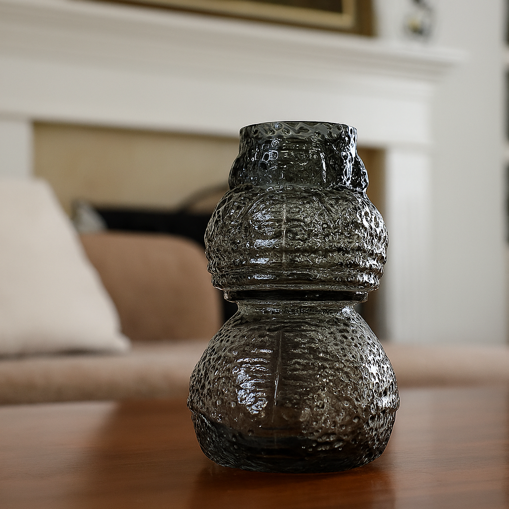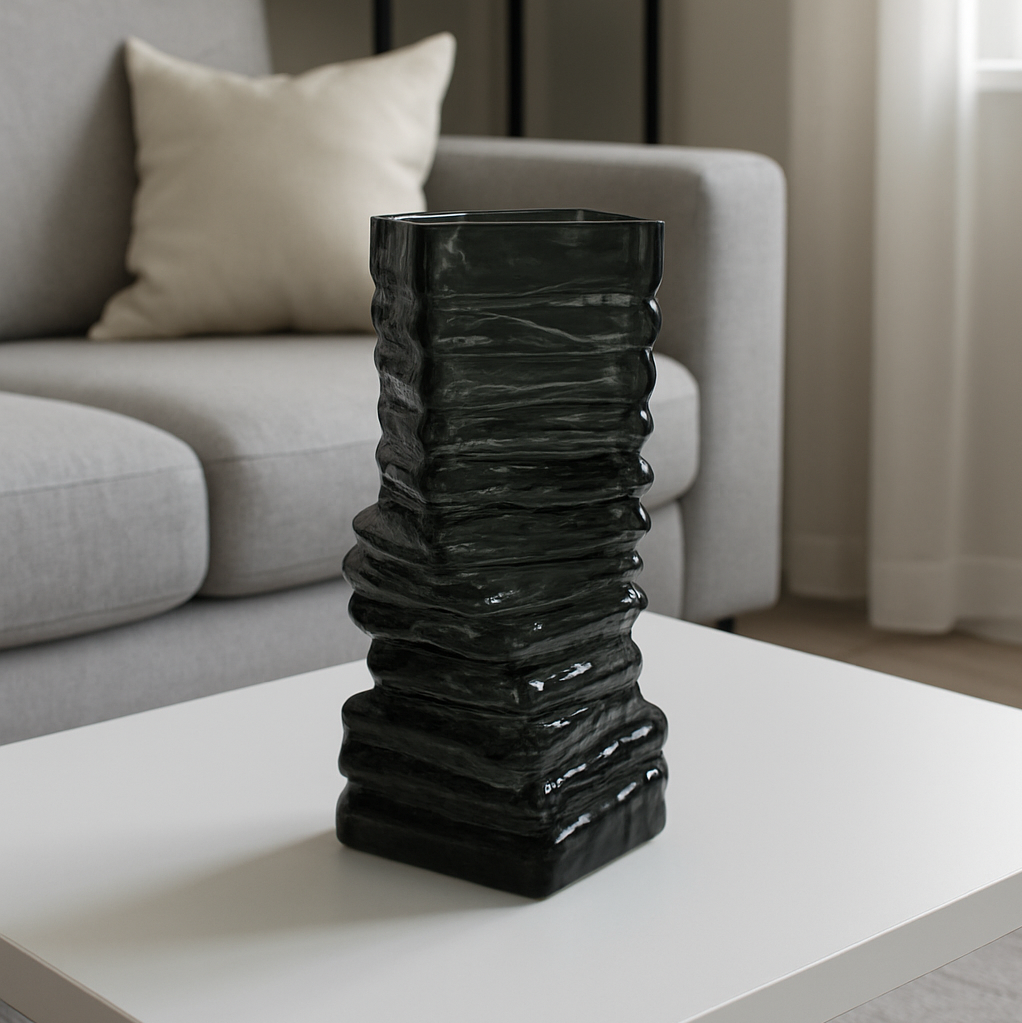 مزهرية زجاجية سوداء مضلعة
