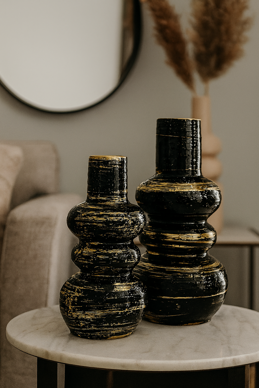 مزهرية أنيقة لامعة باللونين الأسود والذهبي