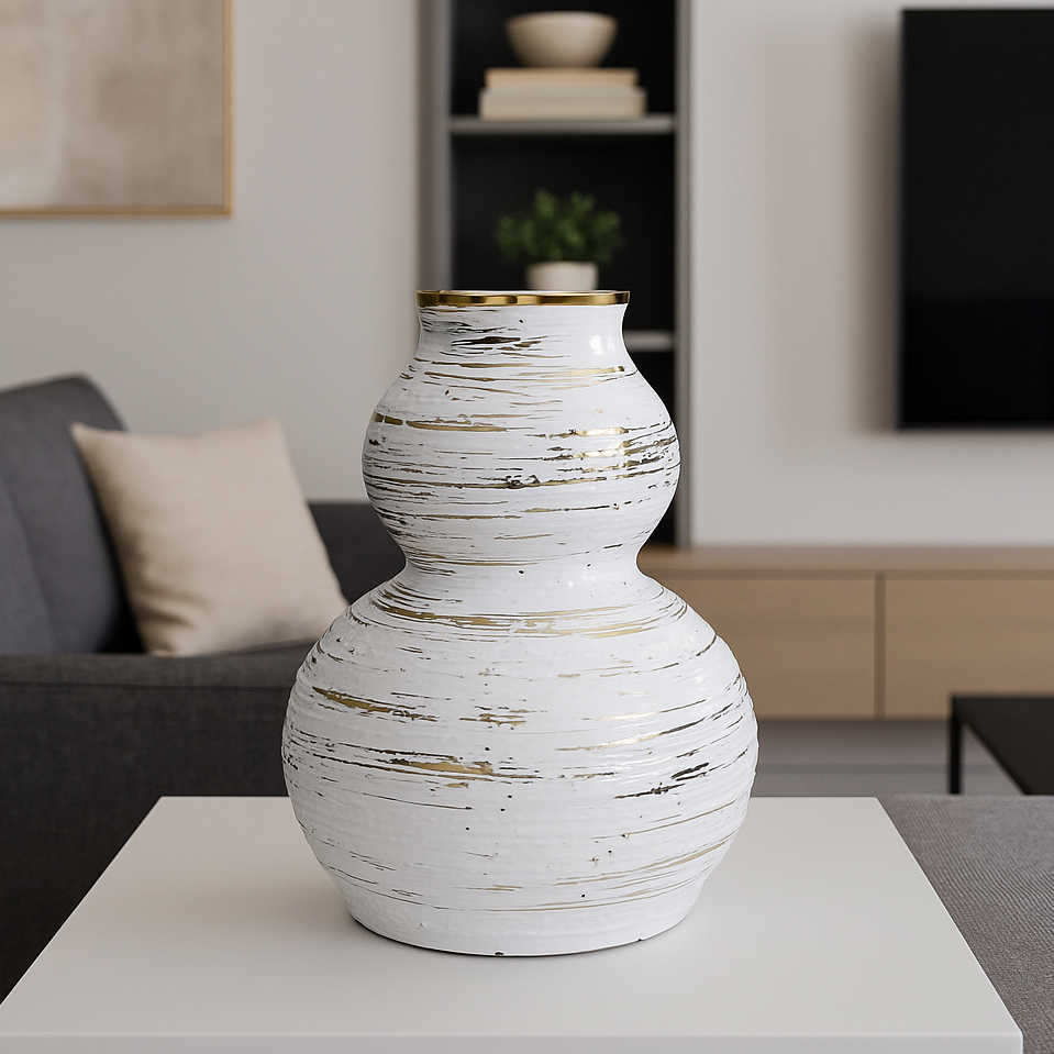 مزهرية أنيقة من الخزف الأبيض بتفاصيل ذهبية