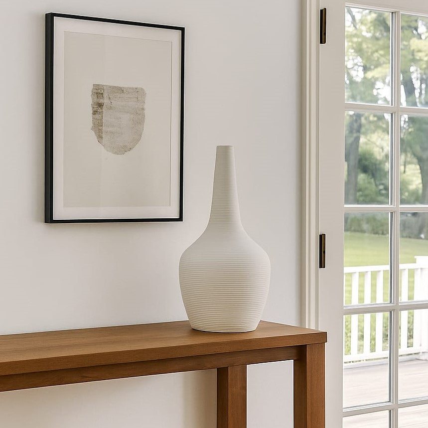 مزهرية أنيقة بتصميم عصري تضيف لمسة جمالية راقية لأي مساحة داخلية. تتميز بشكل متوازن وخطوط بسيطة تناسب الديكور المودرن والحديث، وتنسجم بسهولة مع مختلف أنماط الأثاث والألوان. مثالية لتنسيق الزهور الطبيعية أو الصناعية، أو للاستخدام كقطعة ديكور مستقلة تضفي لمسة فنية على المكان. تناسب غرف المعيشة، طاولات السفرة، المداخل أو المكاتب، وتمنح المساحة إحساسًا بالهدوء والأناقة. مصنوعة من خامات عالية الجودة تضمن المتانة والثبات والشكل الجذاب، لتكون اختيارًا عمليًا وديكوريًا في الوقت نفسه يضيف طابعًا مميزًا ولمسة عصرية راقية.