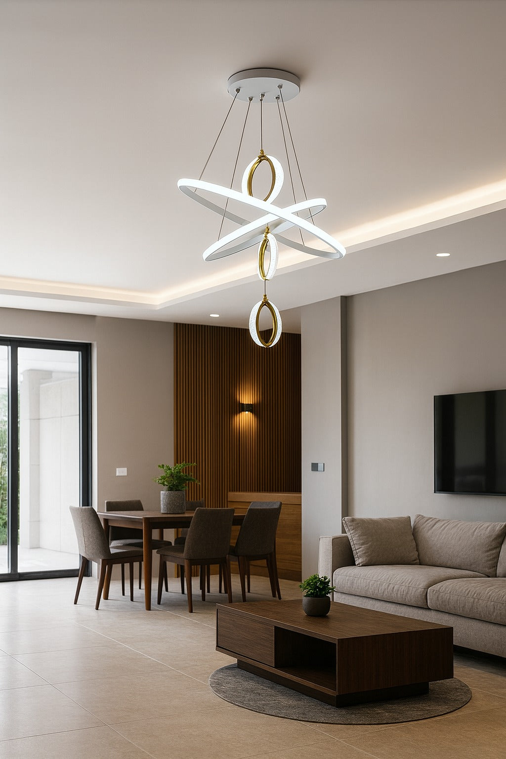 نجف أنيق يضيف لمسة فخامة ورقي لأي مساحة داخلية. يتميز بتصميم عصري ومتوازن يناسب مختلف أنماط الديكور، سواء المودرن أو الكلاسيك، ويمنح المكان إضاءة مريحة تعزز من جمال التفاصيل المحيطة.